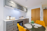 As you step inside, you'll be greeted by a modern and chic atmosphere, carefully designed to provide you with the utmost comfort. Our Apart-hotel boasts a range of stylish and spacious apartments, each equipped with all the amenities you'll need to feel right at home. Sink into plush beds, relax in the inviting living areas, and whip up delicious meals in the fully stocked kitchens.